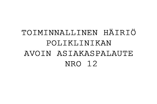 HUS:n Toiminnallinen häiriö poliklinikalle avoin asiakaspalaute nro 12